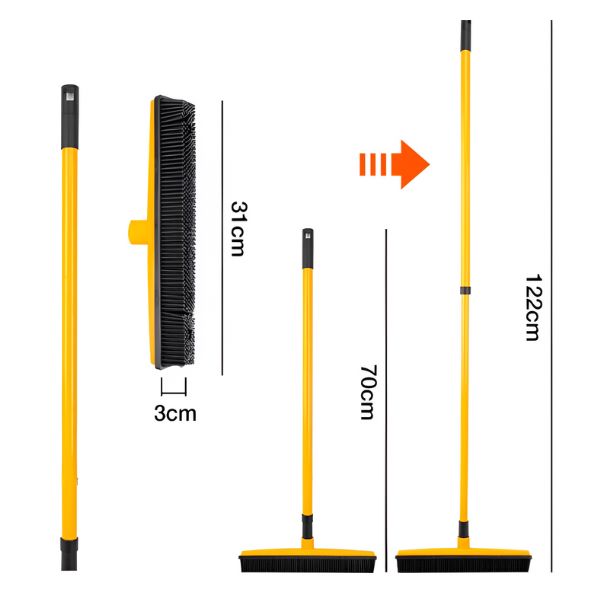 Materijal: TPR guma + plastika Boja: zelena Veličina teleskopske ručke: 70-120 cm (rasloživa) Glava metle: 31 x 3 cm (čekinje su 3 cm)